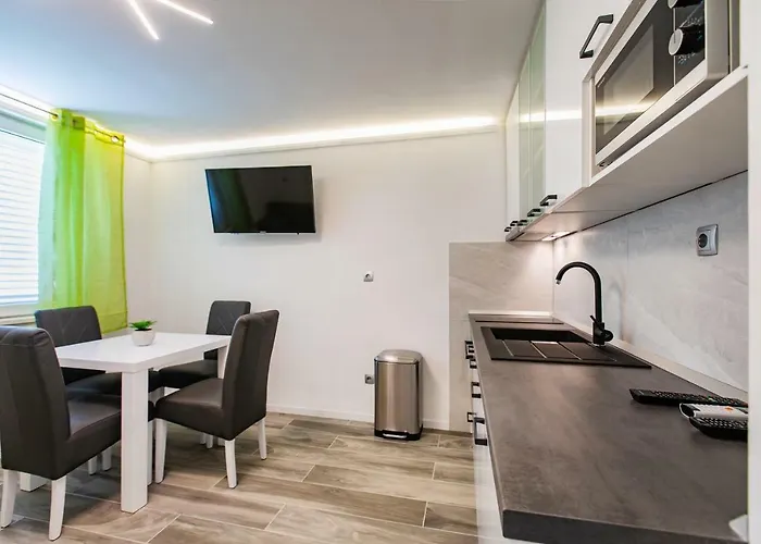 Den närmaste flygplatsen är Splits, som ligger 25 km från lägenheten. För att utforska området kan du använda biluthyrning.